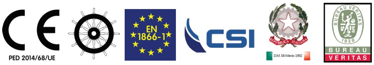 100kg Pulver fahrbare Feuerlöscher, Einsatztemperatur von -30°C bis +60°C, gebaut nach UNI EN 1866-1 (D.M. 6.3.92),, zugelassen nach der Richtlinie für Schiffsausrüstung MED 2014/90/EU, zertifiziert nach der Druckgeräterichtlinie PED 2014/68/EU.