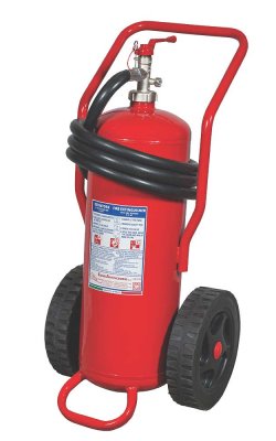 Fahrbare Feuerlöscher 25 kg Pulver, Temperaturbereich von -30°C bis +60°C, hergestellt gem. UNI EN 1866-1, zugelassen nach der Richtlinie für Schiffsausrüstung MED 2014/90/EU, zertifiziert nach der Richtlinie für Druckgeräte PED 2014/68/EU.