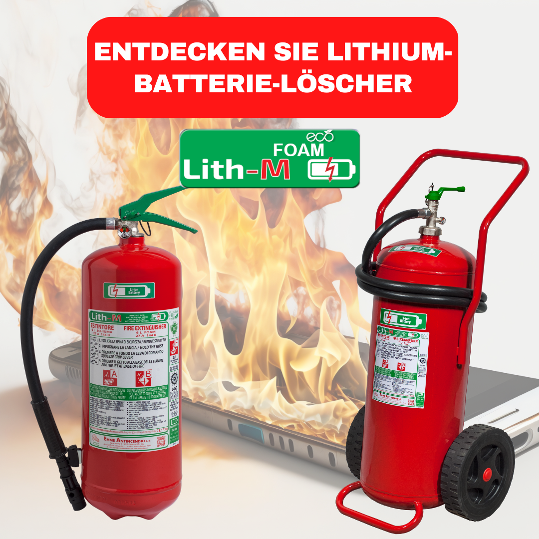 Löschmittel auf Wasserbasis, die durch Sprühen aufgebracht werden, haben sich als das bevorzugte Mittel für diesen Zweck erwiesen. Durch die kühlende Wirkung des Wassers wird wirksam verhindert, dass ein Feuer auf Batteriezellen übergreift, die noch nicht die kritische Temperatur für eine Entzündung erreicht haben. Auch das "thermische Durchgehen" im Inneren einer Zelle wird verlangsamt. Als Nebeneffekt sind Feuerlöscher auf Wasserbasis oft auch für eventuelle Umgebungsbrände, die auftreten können. Emme Feuerlöscher mit diesen Eigenschaften sind sicher und nach EN 3 und EN 1866 zertifiziert. Dank der freiwilligen Prüfung sind die EN 3-Löscher in der Lage, Brände von Lithiumbatterien bis zu 750 Wh zu bekämpfen, die EN 1866-Löscher bis zu 5,1 kWh. (Daten zum Zeitpunkt der Veröffentlichung im März 2023) Andere Löschmittel wie Sand, Metallpulver oder ähnliche Stoffe sind nur bedingt als Löschmittel geeignet, da sie nur den Brandherd abdecken. Die abdeckende Wirkung begünstigt daher ein thermisches Durchgehen. Wird die Abdeckung entfernt, kann es durch die plötzliche Zufuhr von Sauerstoff zum noch warmen Feuer zu einer starken Verpuffung kommen. Diese Löschmittel sind daher eher geeignet, die Umwelt zu schützen. CO2 und Stickstoff haben nur eine sehr kurze und geringe Kühlwirkung und sind daher nicht wirklich geeignet.