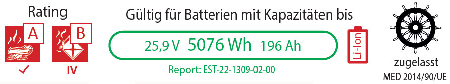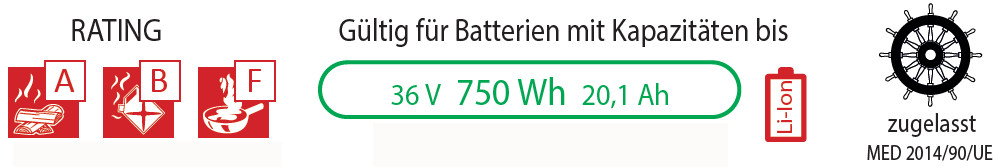 Die Feuerlöscher sind nach MED 2014/90/EU für den Einsatz auf See und nach PED 2014/68/EU für den gewerblichen und privaten Gebrauch zugelassen.