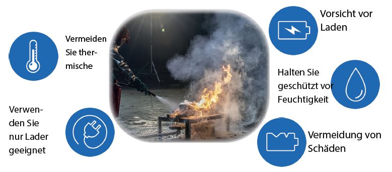 Bei der Verwendung von Lithiumbatterien besteht aufgrund ihrer mechanischen Beschaffenheit leicht die Gefahr, dass sie beschädigt werden. Stöße und Einstiche, z. B. bei Kollisionen mit fahrenden Fahrzeugen, aber auch Stürze auf harten Boden, können die Batterie beschädigen, und wenn sich