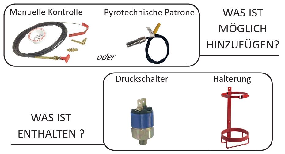 Diese Systeme wurden entwickelt und konstruiert, um an Bord von Freizeitbooten mit einer Länge von bis zu 24 m zum Schutz des Motorraums installiert zu werden. Das System muss mit Hilfe der mitgelieferten Halterung im Motorraum installiert werden. Das mit einer thermoexpandierenden Glühbirne ausgestattete Ventil ermöglicht das Anbringen eines Aktivierungskabels (optional) oder einer pyrotechnischen Patrone (optional) zur Aktivierung über eine Fernbedienung oder einen Detektor für die Installation der Vorrichtung außerhalb des Motorraums. Das Ventil ist außerdem mit einem Druckschalter zur ständigen Anzeige des Drucks im Inneren des Geräts ausgestattet.