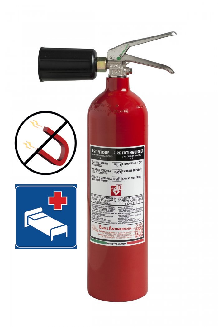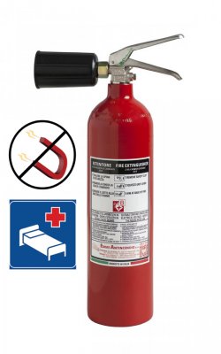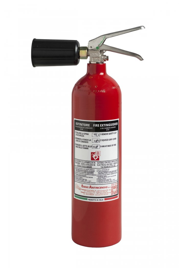 2 Kg Carbon Dioxide CO2 fire extinguisher, temperature range from -30°C to +60°C, manufactured in accordance to UNI EN 3-7 , approved Marine Equipment Directive MED 2014/90/EU, certified according to the directive for pressure equipment PED 2014/68/EU. Manufactured according at productions checks as agreed with EN 3-10.