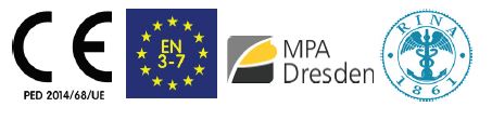 certified according to the directive for pressure equipment PED 2014/68/EU. RINA certified fire extinguisher.