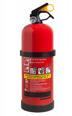 -2 Kg powder fire extinguisher, temperature range from -30°C to +60°C, manufactured in accordance to EN 3-7:2008,