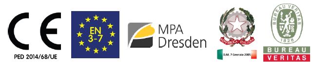 6 L foam fire extinguisher, temperature range from -30°C to +60°C, manufactured in accordance to UNI EN 3-7 (D.M. 7.1.2005), certified according to the directive for pressure equipment PED 2014/68/EU. Manufactured according at productions checks as agreed with EN 3-10.