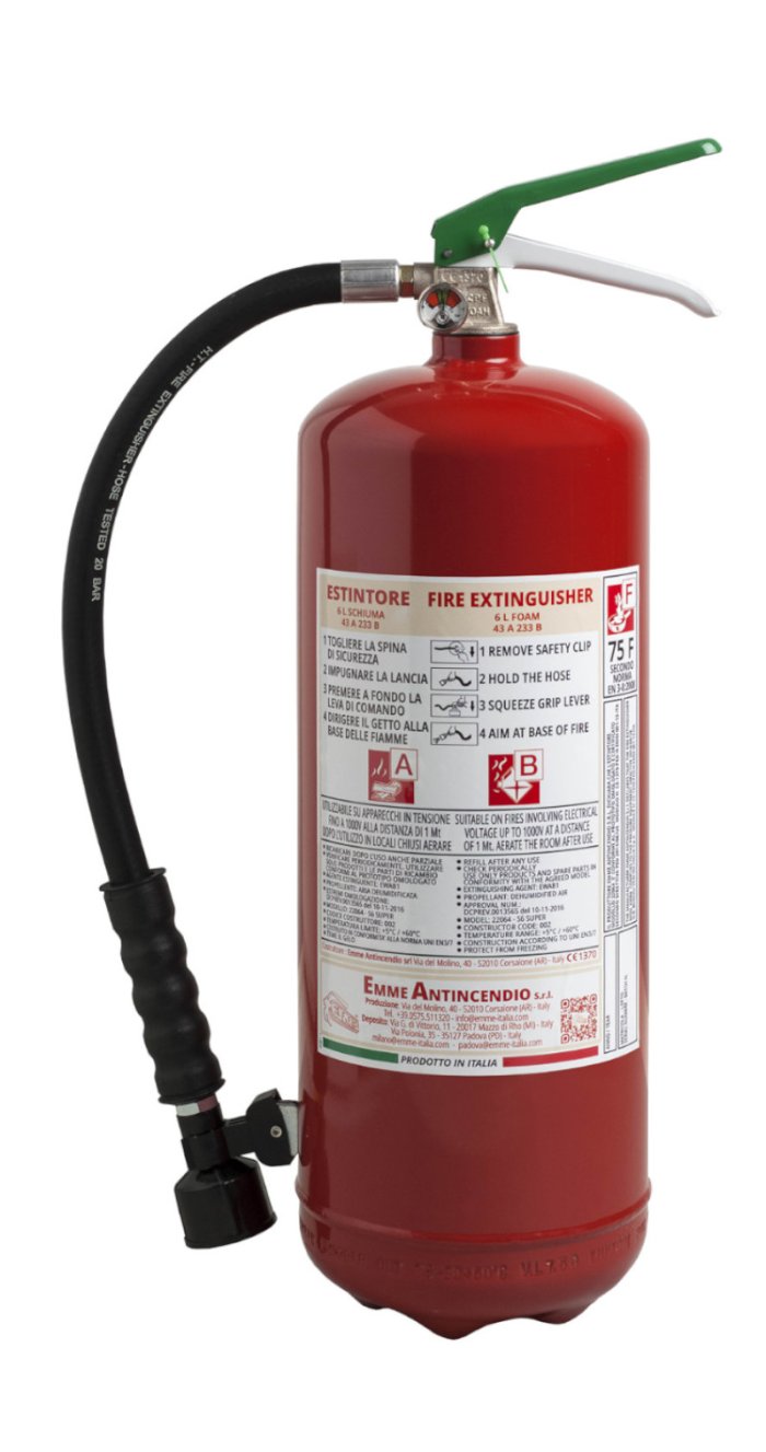 6 L. Foam Fire Extinguisher- Code 22064- 43A 233B 75F -UNI EN 3-7