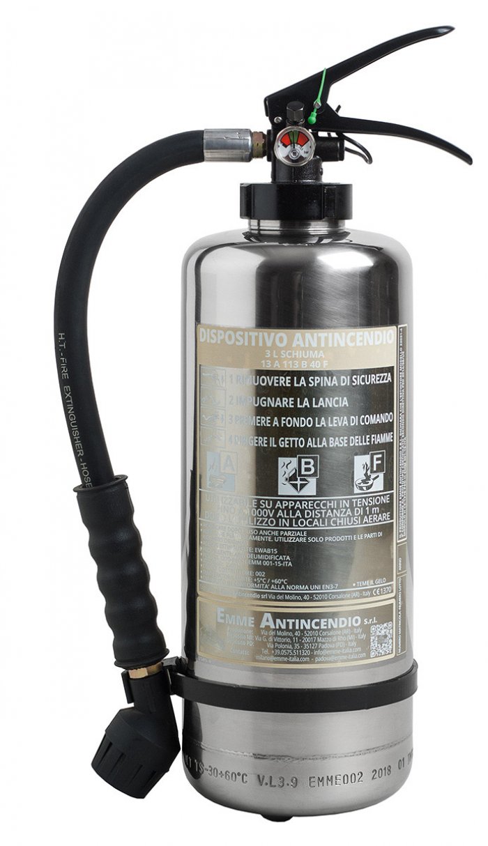 Equipo contra incendios de espuma 3 L - UNI EN 3-7- Acero inoxidable AISI 304 - Código 22031-4