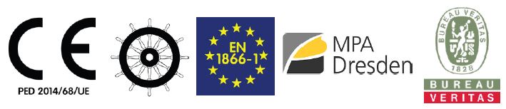 por la Directiva de Equipos Marinos MED 2014/90/EU, certificado de acuerdo con la Directiva de Equipos a Presión