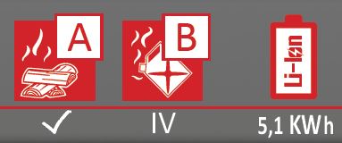 CLASE DE FUEGO: A IV B - 5,1 KWh