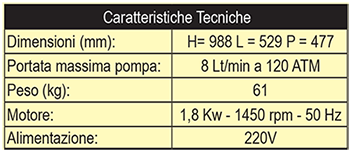 APPARECCHIATURA PER IL COLLAUDO IDRICO 35 ATM PER PORTATILI + 12 ATM PER MANICHETTE UNI 45/70 CON SERBATOIO LT. 10 E RACCORDO DIM. 529X988Hx477 (5001)