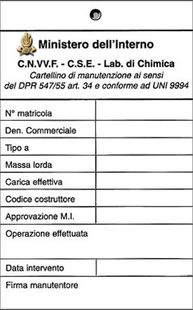 1) numero di matricola o altri estremi identificatori dell'estintore;