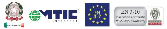 - Tutti gli estintori sono certificati volontariamente con un controllo Qualità di Prodotto garantita da Bureau Veritas Italia.