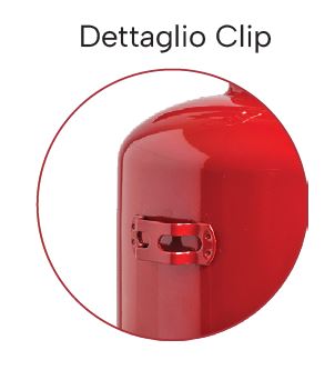 - INVOLUCRO In lega di acciaio ad alta resistenza, profondo stampaggio, con clip, verniciatura esterna a polvere, colore Rosso Ral 3000.