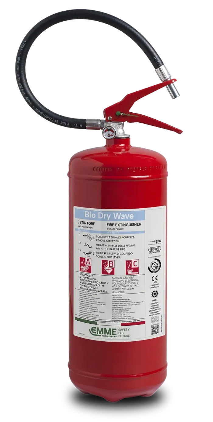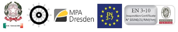 - Estintore a polvere da 6 Kg , temperatura di utilizzo da -30°C a +60°C, costruito in accordo alla norma UNI EN 3-7 (D.M. 7.1.2005), approvato Marine Equipment Directive MED 2014/90/UE, certificato secondo la direttiva per attrezzature a pressione PED 2014/68/UE. Estintore realizzato in conformità ai controlli di produzione secondo norma EN 3-10.