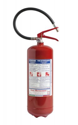 Estintore a polvere da 6 Kg con involucro ad alta resistenza, profondo stampaggio, temperatura di utilizzo da -30°C a +60°C, costruito in accordo alla norma UNI EN 3-7 (D.M. 7.1.2005), certificato secondo la direttiva per attrezzature a pressione PED 2014/68/UE. Estintore realizzato in conformità ai controlli di produzione secondo norma EN 3-10.