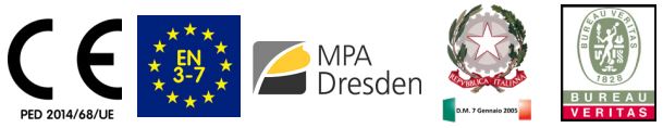 - Tutti gli estintori sono certificati volontariamente con un controllo Qualità di Prodotto garantita da Bureau Veritas Italia.