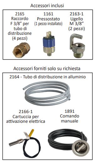 - Propellente: Azoto (N2 ) 15 Bar a 20°C