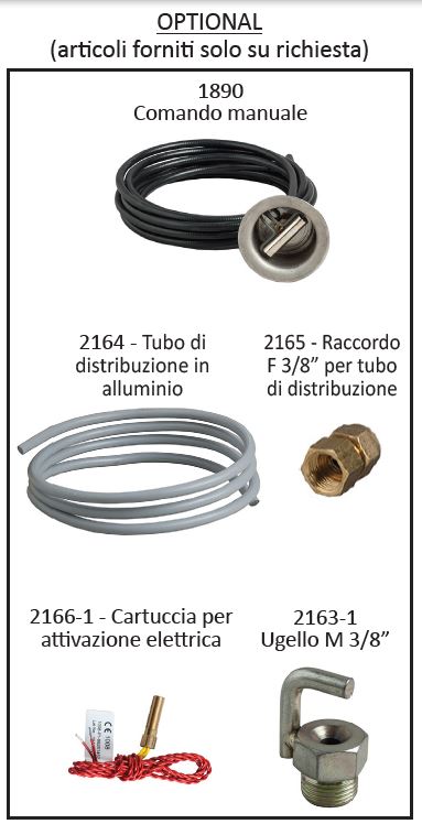 - Impianto antincendio automatico Serie Industrial a polvere 3 kg , temperatura di utilizzo da -30°C a +60°C, certificato secondo la direttiva per attrezzature a pressione PED 2014/68/UE.