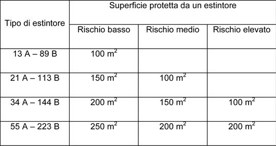 Di seguito la tabella riportata dal decreto 10 marzo 1998 riguardante il numero di estintori necessari in un luogo di lavoro: