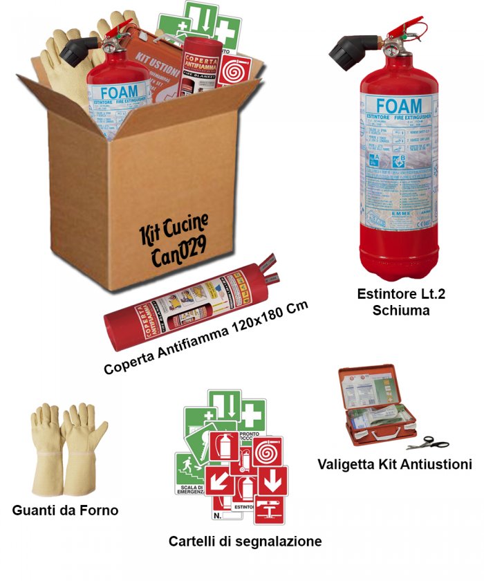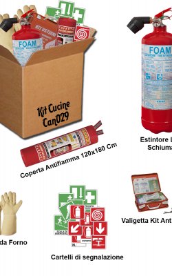 Il contenuto del Kit garantisce all'utilizzatore il minimo indispensabile per la gestione del principio d'incendio del mezzo e per la gestione di un primo soccorso.