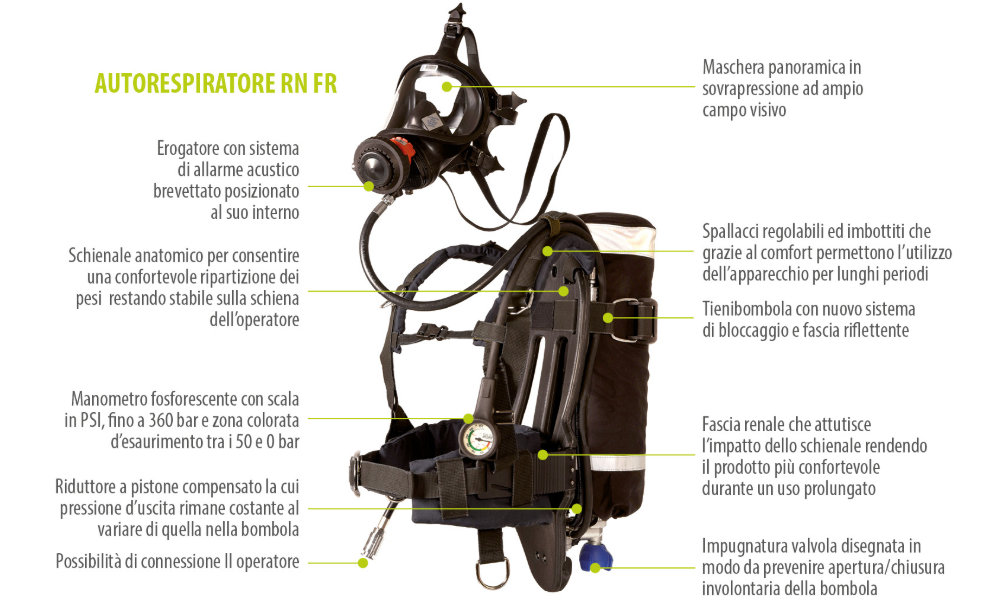Emme Antincendio Srl è Centro di Assistenza autorizzato per autorespiratori e maschere pieno facciali con filtro Spasciani SPA.