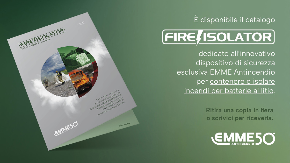 presentiamo una novità in esclusiva per EMME Antincendio: 💥 il catalogo FIRE ISOLATOR con l'innovativo dispositivo per combattere e controllare gli incendi da auto elettriche e da batterie al litio, vieni a trovarci in fiera:
