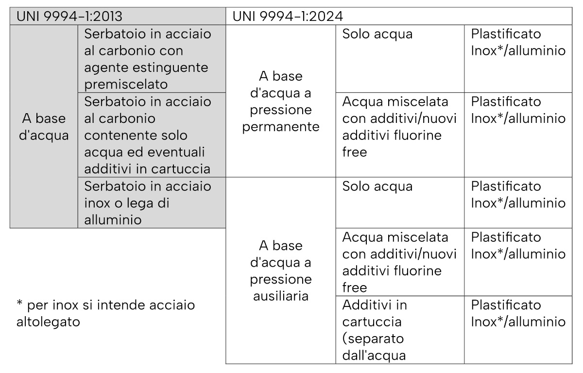Vista la maggior importanza data dalla legislazione vigente a estintori a base d'acqua, è stato analizzato più dettagliatamente questa tipologia di estintore andando ad analizzare la differente tipologia costruttiva ed estinguente utilizzato.