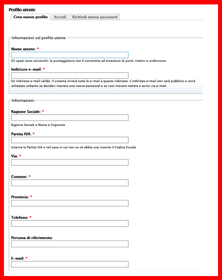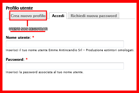 - Se non vi siete mai registrati prima nel nostro sito è necessario cliccare nel campo "CREA NUOVO PROFILO"