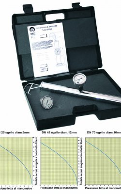 Il tubo di Pitot permette di misurare la pressione dinamica e la velocità di un fluido in movimento oltre a ricavare la portata di una bocca di erogazione, di diametro noto, di un qualsiasi sistema idraulico e in
