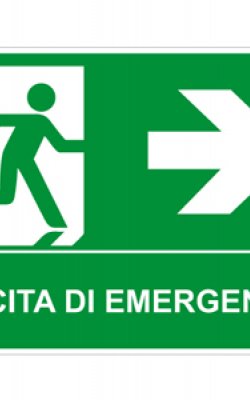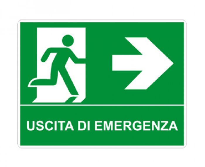USCITA DI EMERGENZA DESTRA ORIZZONTALE (CON TESTO) NORMA UNI EN ISO 7010 (E0021761)